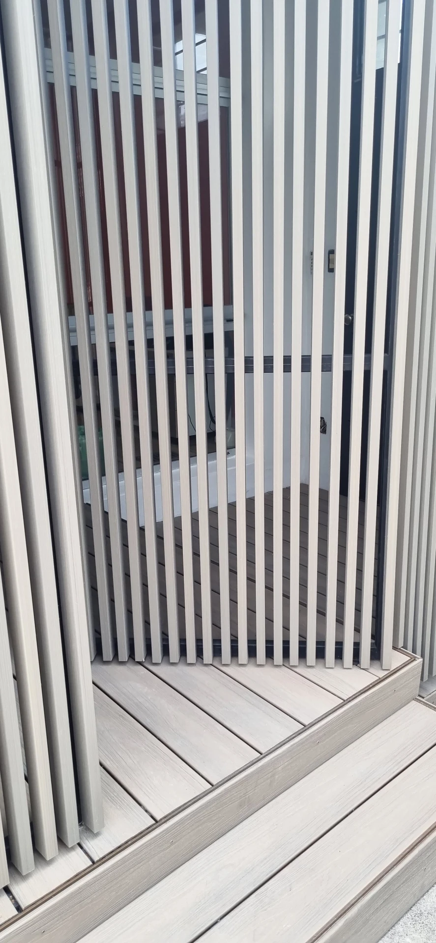El WPC es un compuesto de aserrin y PVC logrando así un material con la textura de la madera y la resistencia del PVC. No requiere ningún tratamiento de superficie.